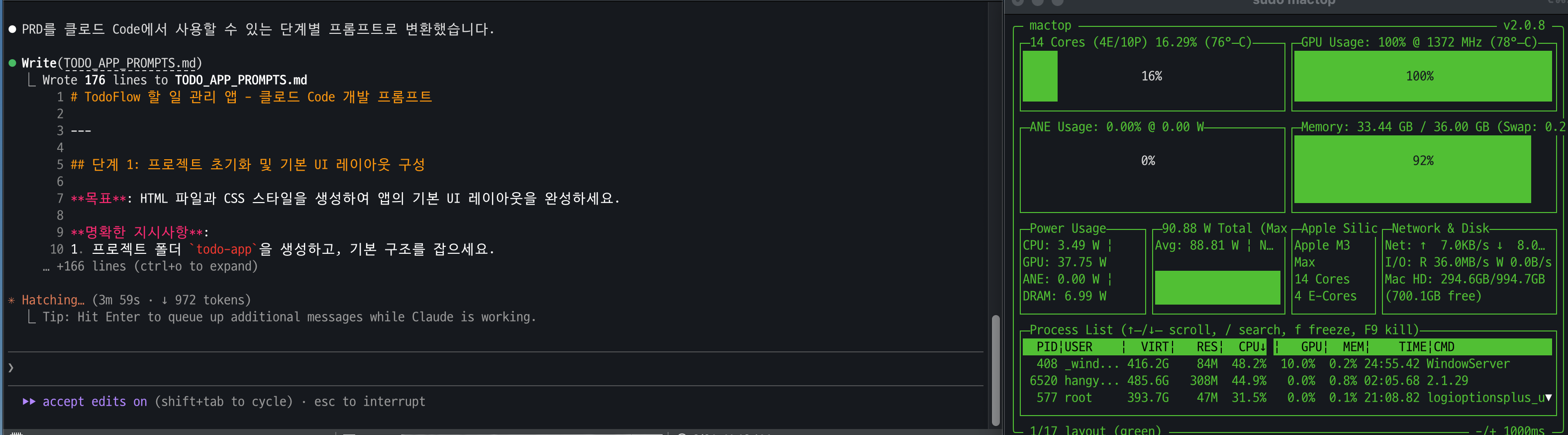 claude + local LLM으로 코딩을 하니.. gpu 다잡아 먹고, 전원 만땅으로 쓰고, 팬 만땅으로 돌아가니 팬소리 시끄럽니다.